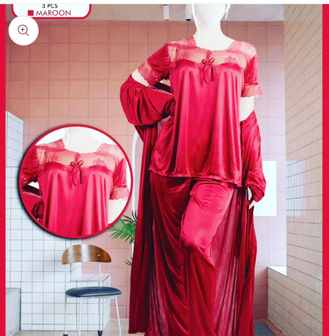 Effortless Layering — 3-Piece China Silk Set Why choose one when you can have the complete set? This 3-piece collection includes a minimalist bikini-style top, matching bottoms, and a stunning mid-length robe with wide lace sleeves. The contrast between the lustrous silk and the sheer lace creates a look of timeless luxury.